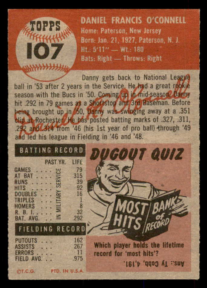 1953 Topps Baseball #107 Danny O'Connell Pirates EX-MT 546751