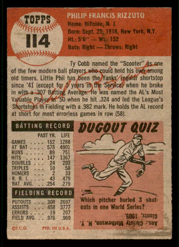 1953 Topps Baseball #114 Phil Rizzuto Yankees VG-EX 541810