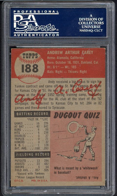 1953 Topps Baseball #188 Andy Carey Yankees PSA 5 EX 538048