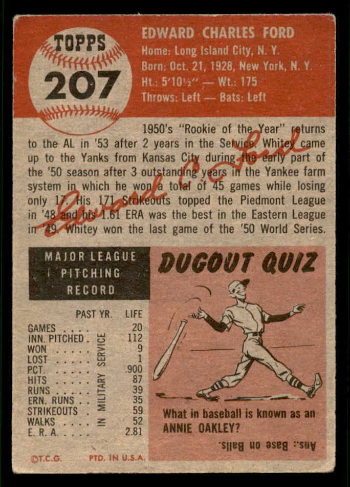 1953 Topps Baseball #207 Whitey Ford Yankees GD-VG 541951
