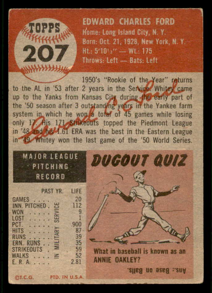 1953 Topps Baseball #207 Whitey Ford Yankees VG-EX 541811