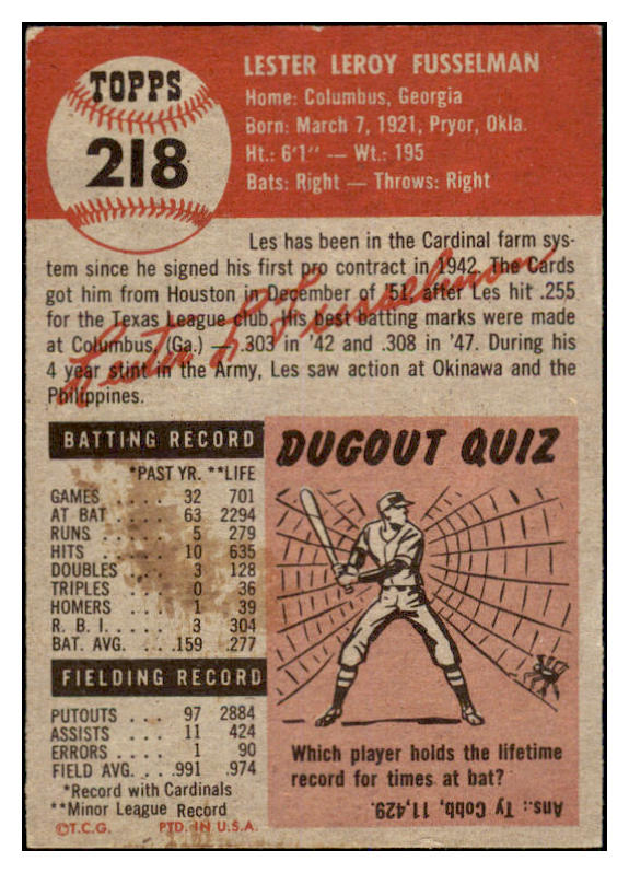 1953 Topps Baseball #218 Les Fusselman Cardinals VG-EX 528697