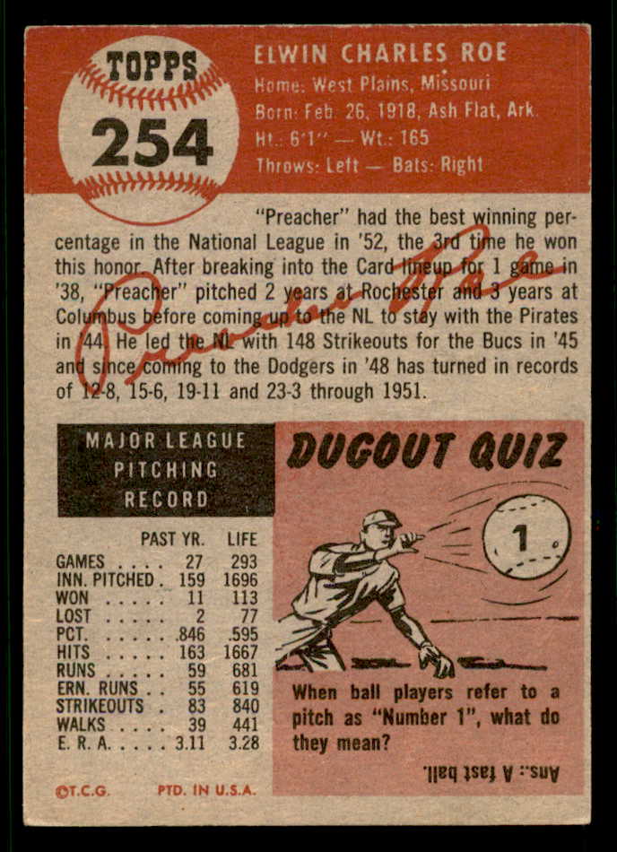 1953 Topps Baseball #254 Preacher Roe Dodgers EX 541836
