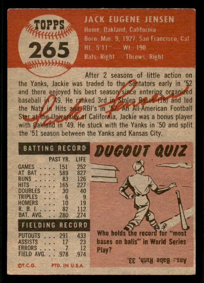 1953 Topps Baseball #265 Jackie Jensen Senators EX 541968