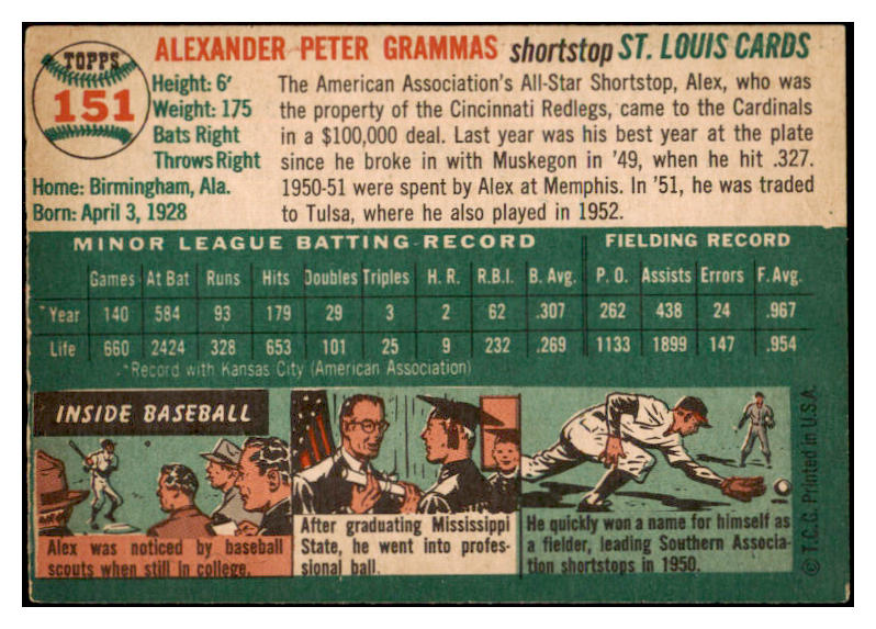 1954 Topps Baseball #151 Alex Grammas Cardinals VG-EX 530701
