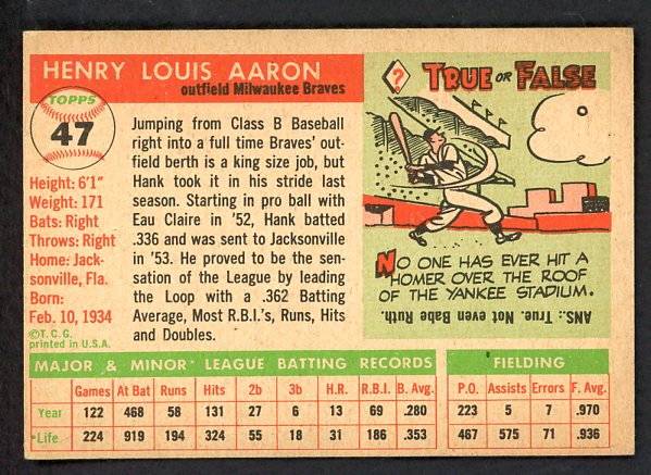 1955 Topps Baseball #047 Hank Aaron Braves EX-MT/NR-MT 525275