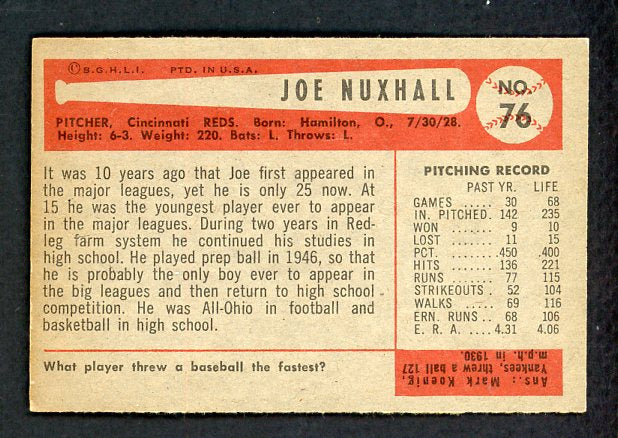 1954 Bowman Baseball #076 Joe Nuxhall Reds EX-MT 542035