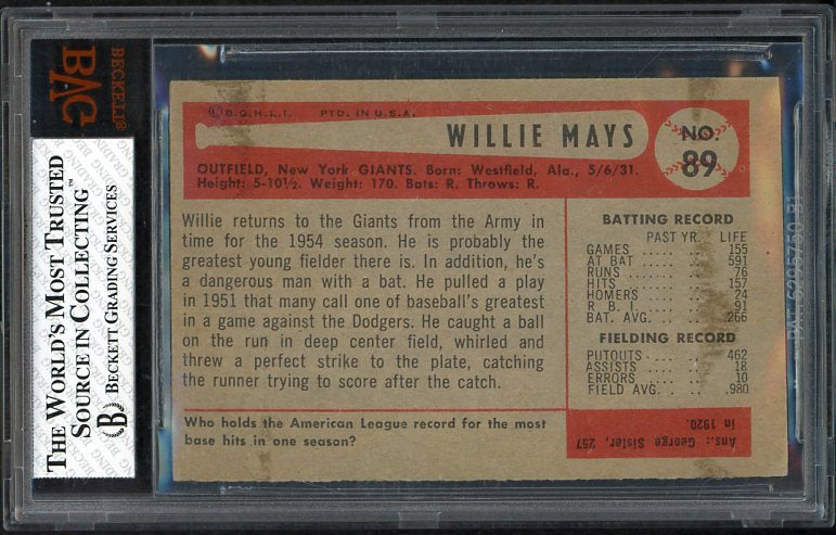 1954 Bowman Baseball #089 Willie Mays Giants BVG 3 VG 538272