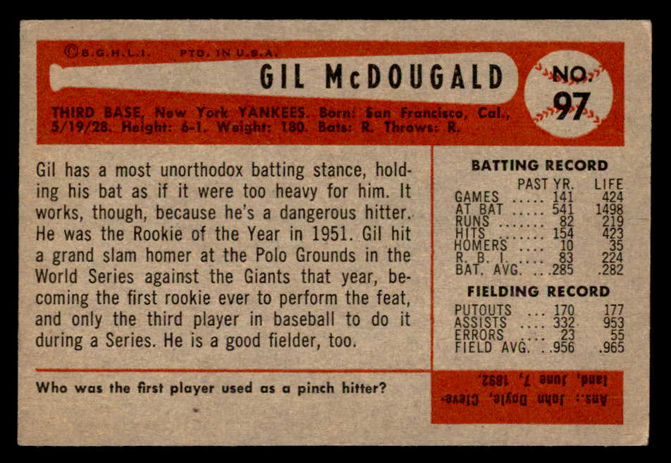 1954 Bowman Baseball #097 Gil McDougald Yankees EX 547232