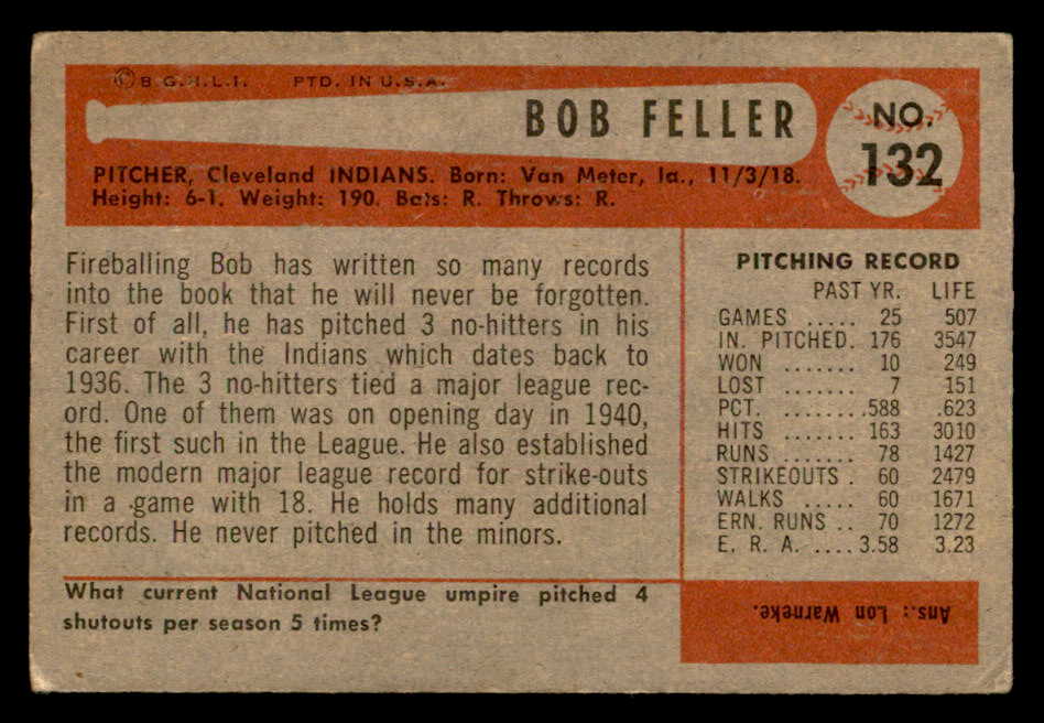 1954 Bowman Baseball #132 Bob Feller Indians VG-EX 539138