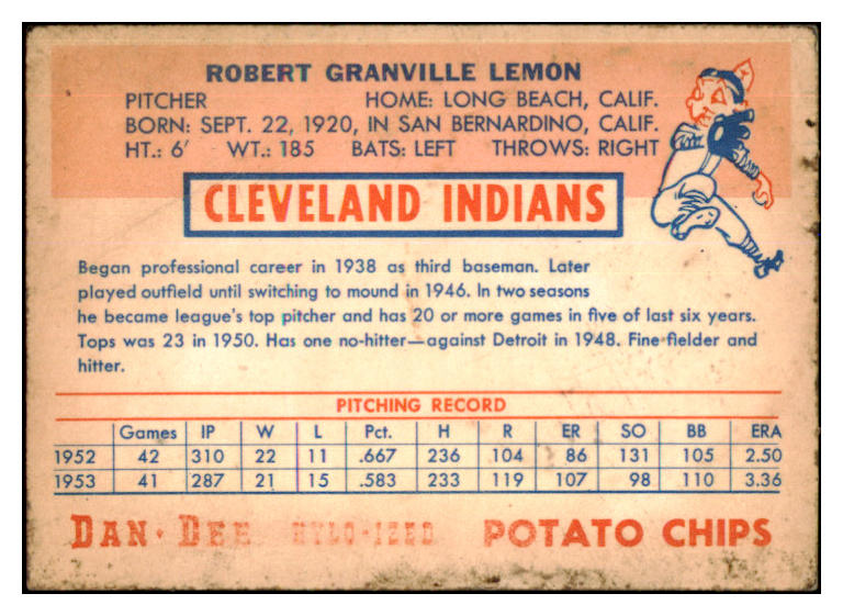 1954 Dan Dee Bob Lemon Indians VG-EX 431164