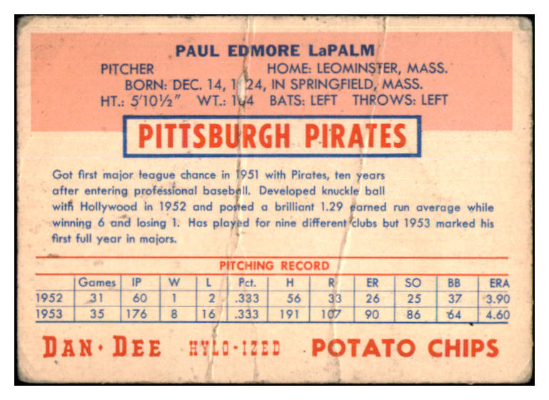 1954 Dan Dee Paul Lapalme Pirates Good 431163