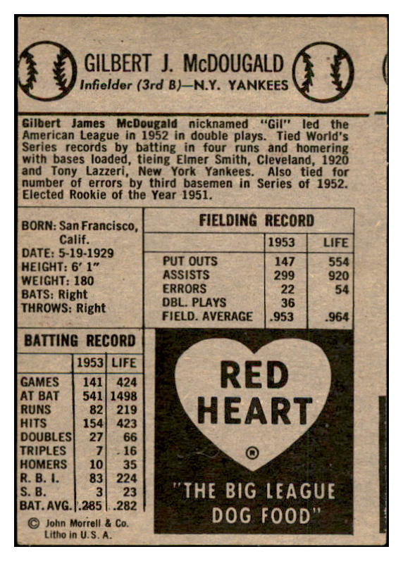 1954 Red Heart Gil McDougald Yankees EX-MT 536779