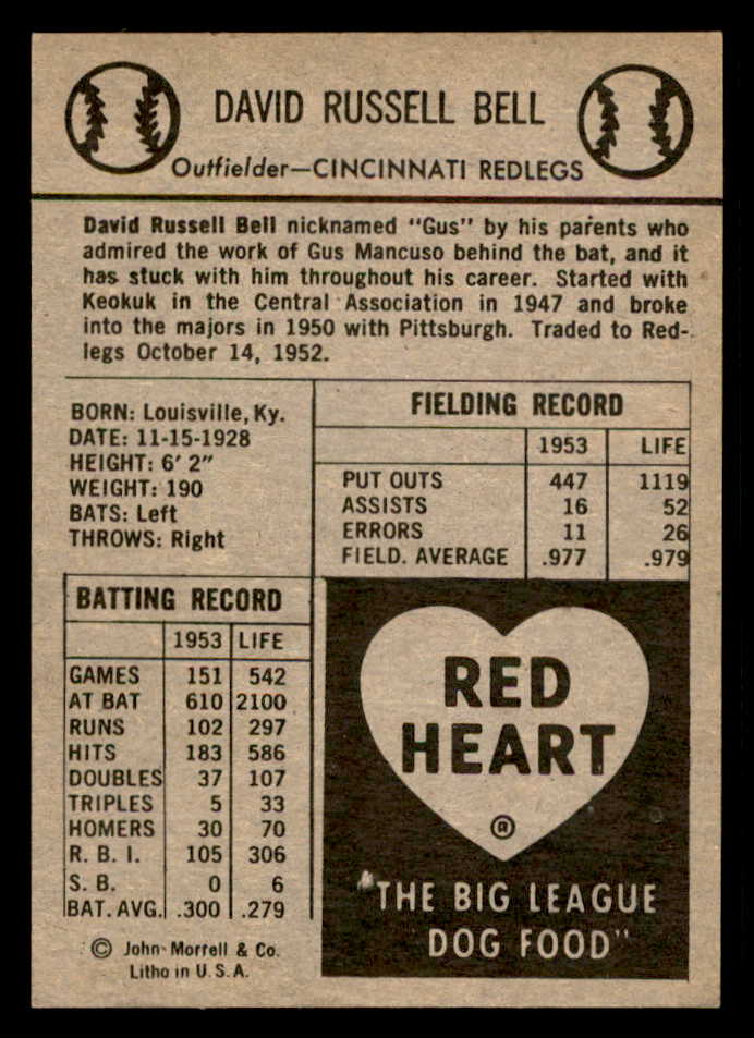 1954 Red Heart Gus Bell Reds NR-MT 538458