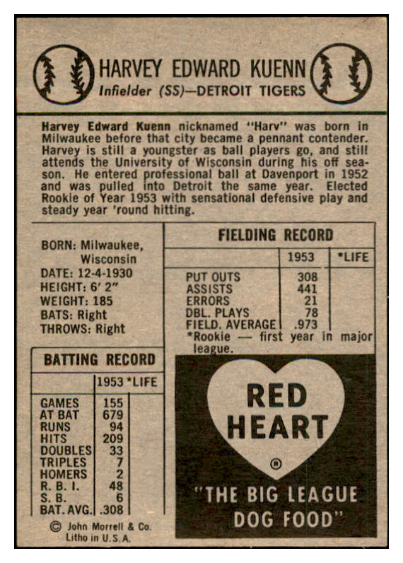 1954 Red Heart Harvey Kuenn Tigers NR-MT 536775