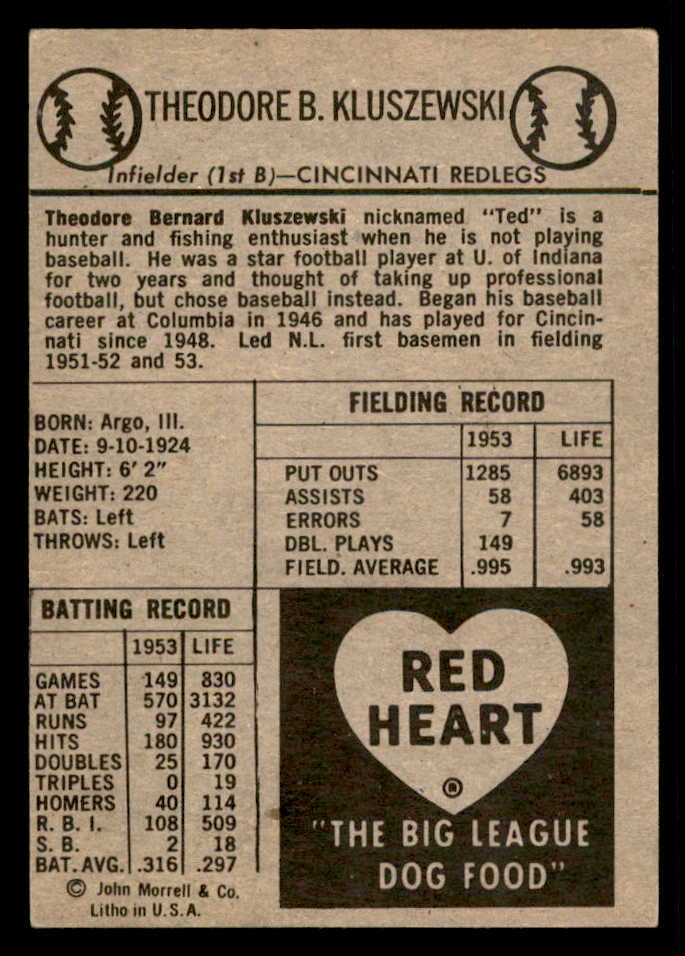 1954 Red Heart Ted Kluszewski Reds EX 538457
