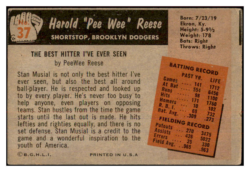 1955 Bowman Baseball #037 Pee Wee Reese Dodgers VG-EX 534379
