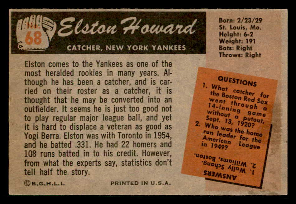 1955 Bowman Baseball #068 Elston Howard Yankees EX+/EX-MT 541791