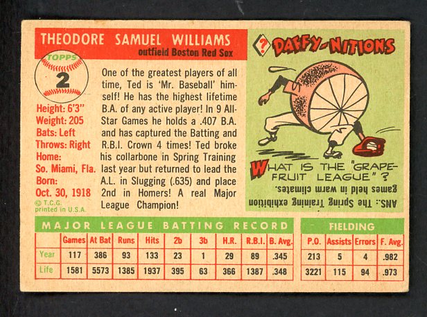 1955 Topps Baseball #002 Ted Williams Red Sox VG 538646