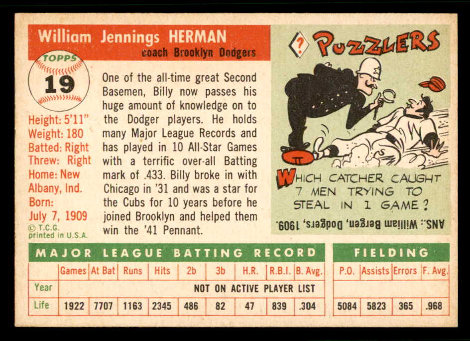 1955 Topps Baseball #019 Billy Herman Dodgers EX-MT 541990