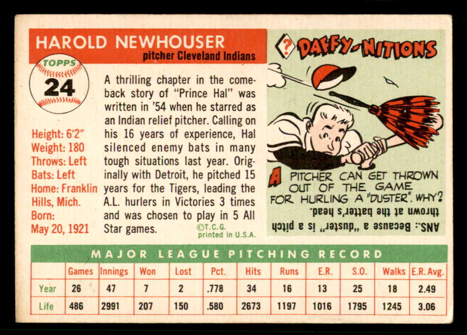 1955 Topps Baseball #024 Hal Newhouser Indians EX 542397