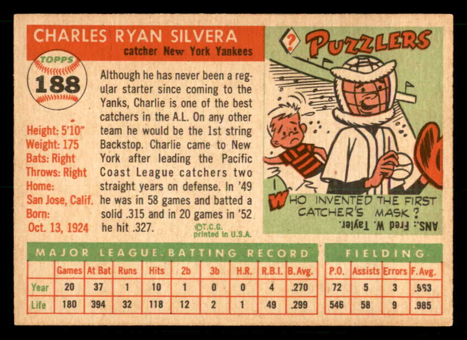 1955 Topps Baseball #188 Charlie Silvera Yankees EX-MT 539515