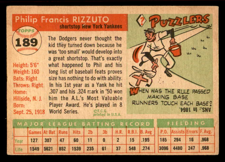1955 Topps Baseball #189 Phil Rizzuto Yankees VG-EX 539047