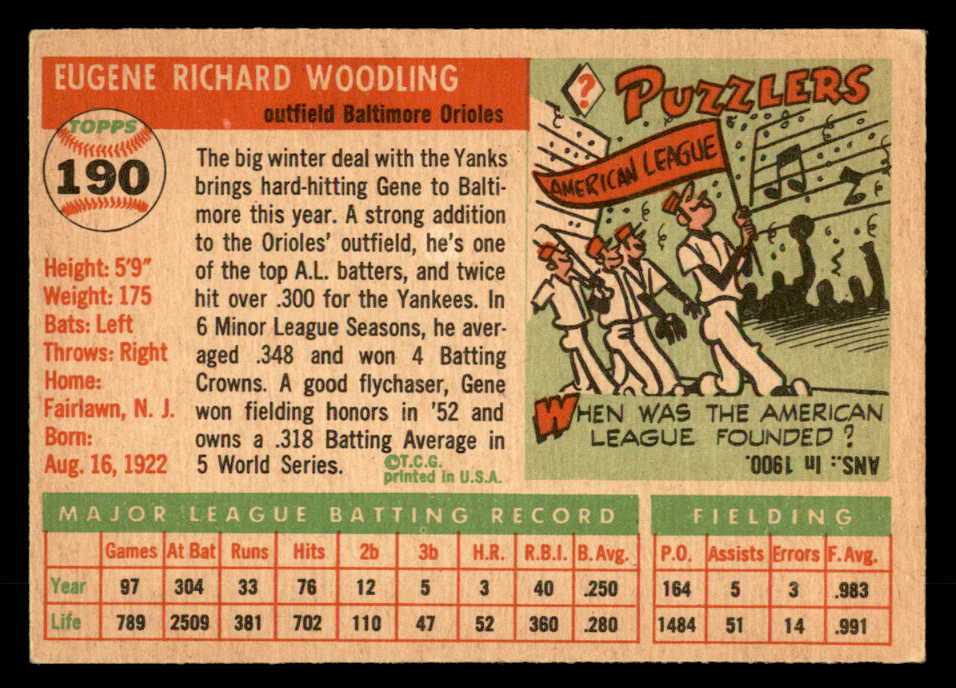 1955 Topps Baseball #190 Gene Woodling Orioles EX 547265
