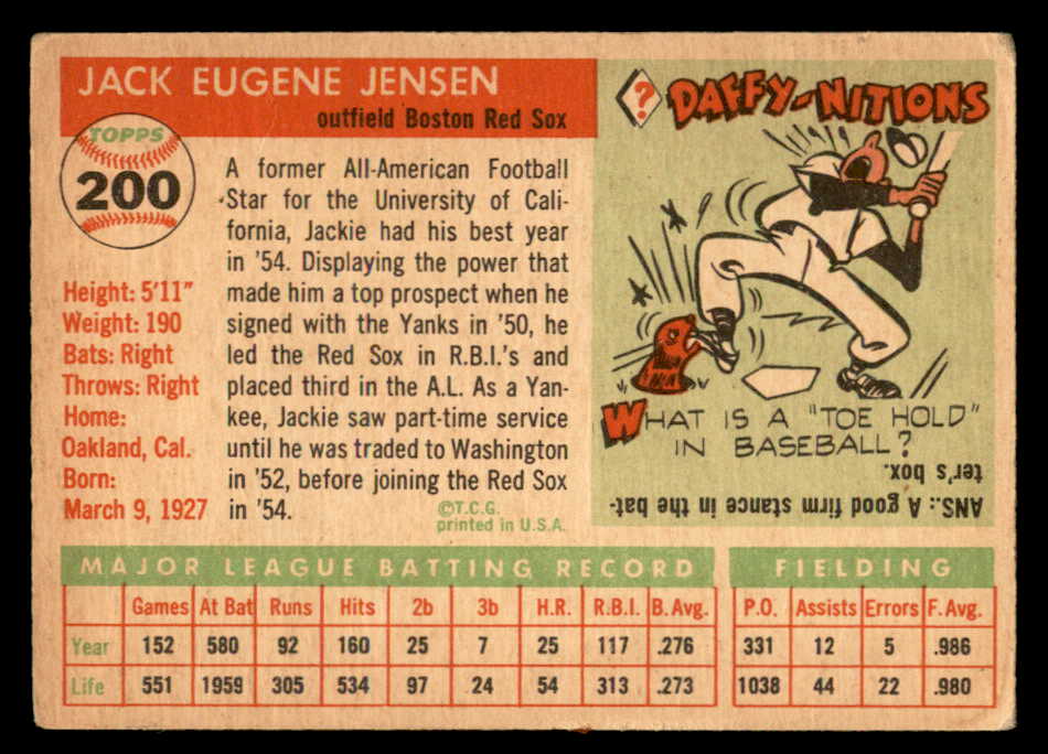 1955 Topps Baseball #200 Jackie Jensen Red Sox VG-EX 547273
