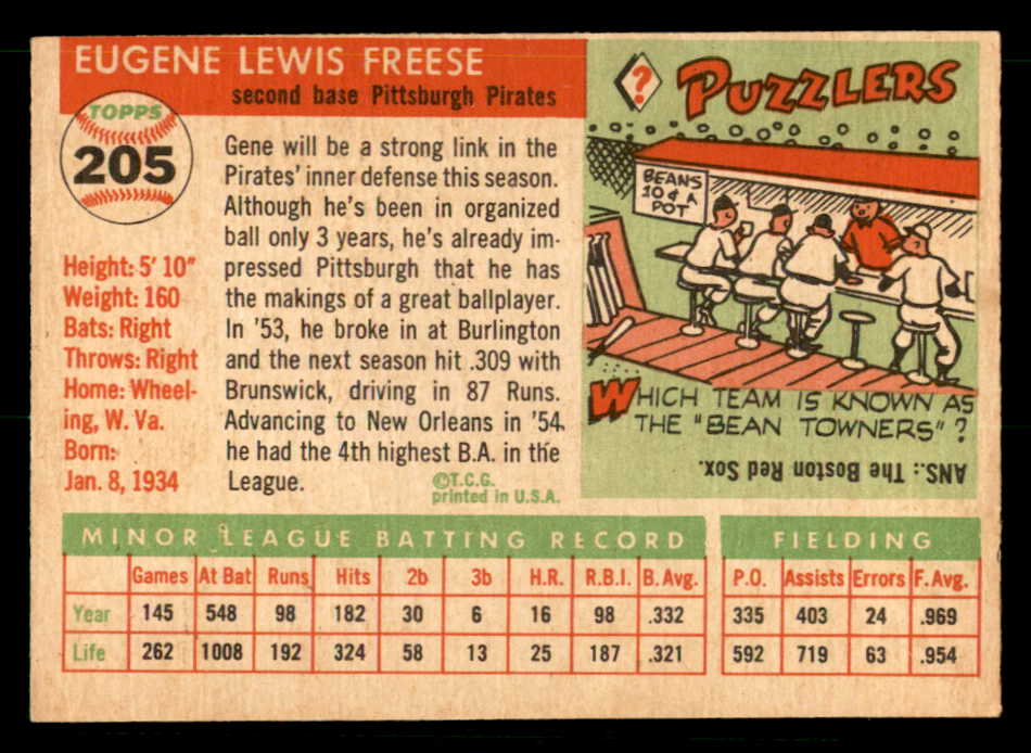 1955 Topps Baseball #205 Gene Freese Pirates EX-MT 539532