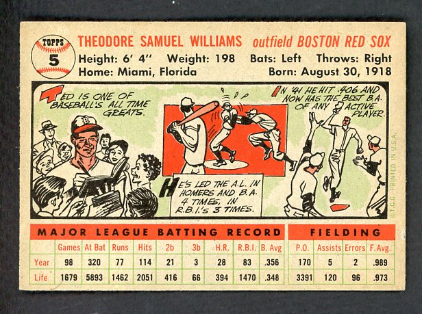 1956 Topps Baseball #005 Ted Williams Red Sox EX Gray 538648