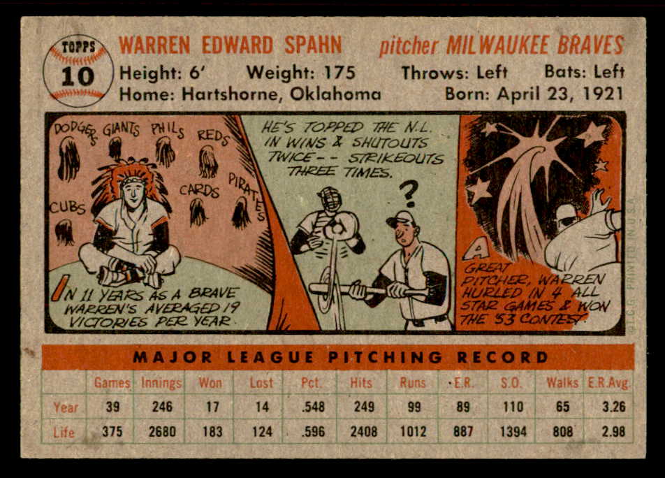 1956 Topps Baseball #010 Warren Spahn Braves EX-MT Gray 539048