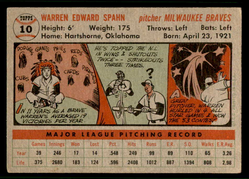 1956 Topps Baseball #010 Warren Spahn Braves VG Gray 541245