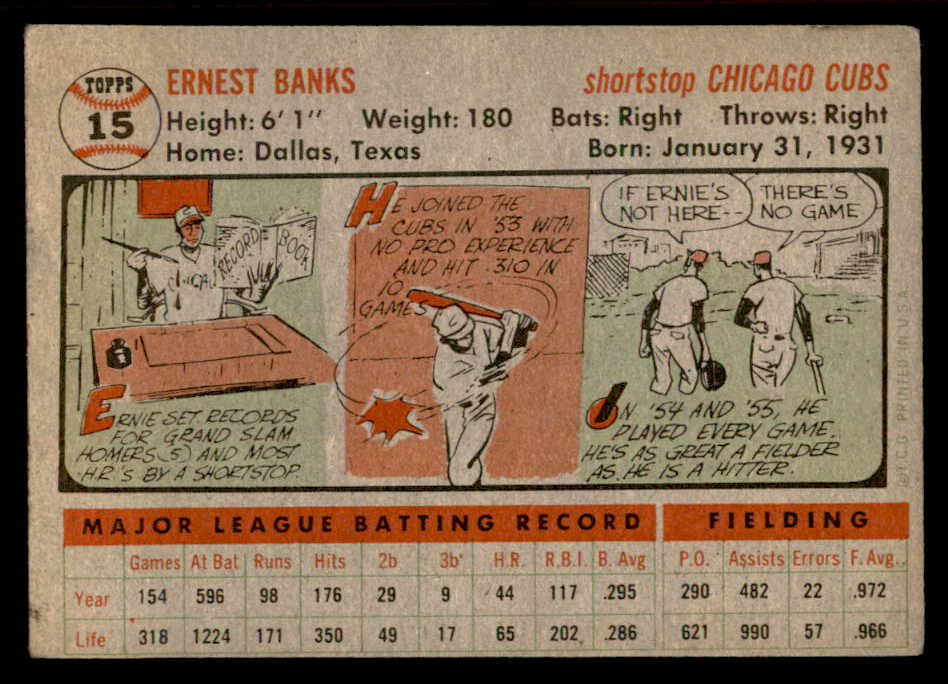 1956 Topps Baseball #015 Ernie Banks Cubs VG-EX Gray 539051