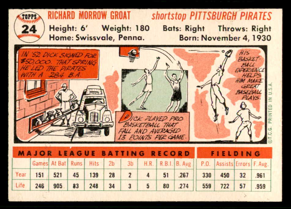 1956 Topps Baseball #024 Dick Groat Pirates NR-MT White 541220