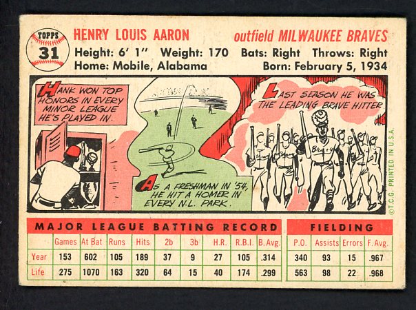 1956 Topps Baseball #031 Hank Aaron Braves VG-EX541898