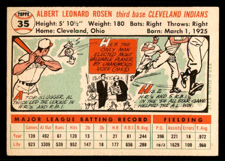 1956 Topps Baseball #035 Al Rosen Indians EX-MT White 541209