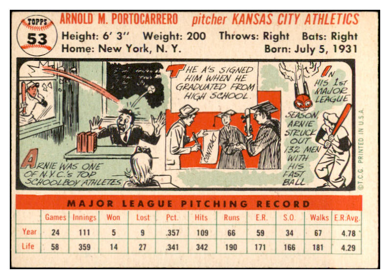 1956 Topps Baseball #053 Arnie Portocarrero A's EX-MT White 535096