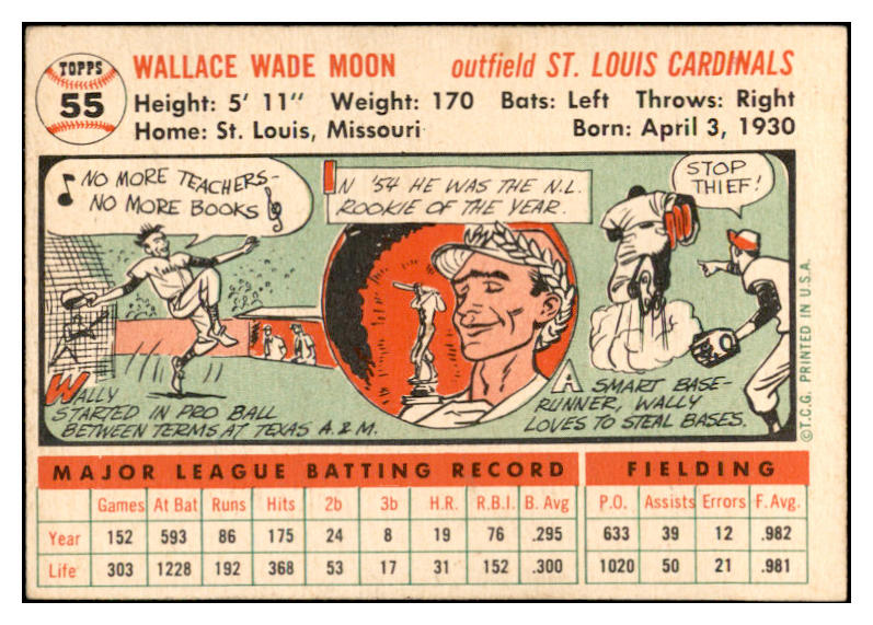 1956 Topps Baseball #055 Wally Moon Cardinals EX-MT White 535098
