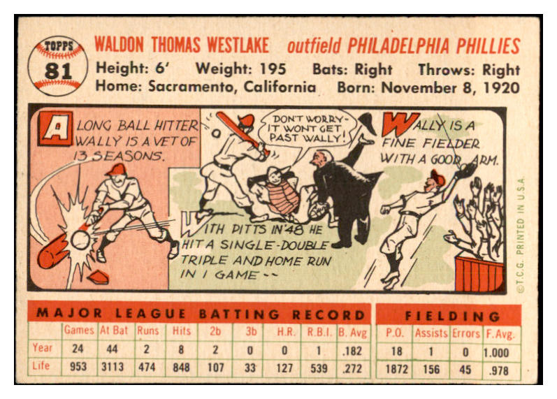 1956 Topps Baseball #081 Wally Westlake Phillies EX-MT White 535115
