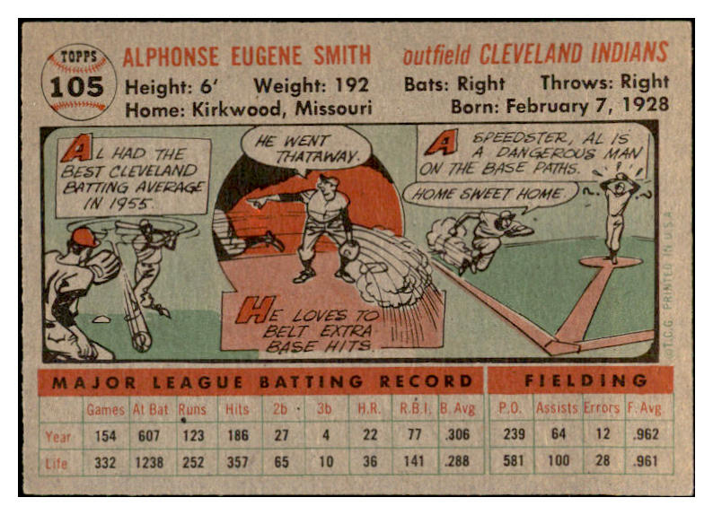 1956 Topps Baseball #105 Al Smith Indians EX-MT Gray 535133