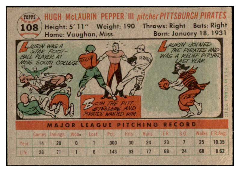 1956 Topps Baseball #108 Laurin Pepper Pirates EX-MT Gray 535136