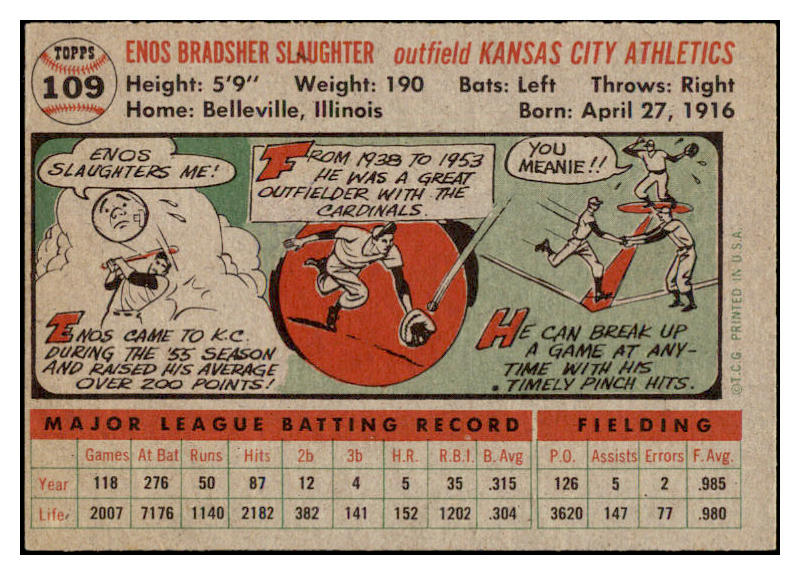 1956 Topps Baseball #109 Enos Slaughter A's EX Gray 523731