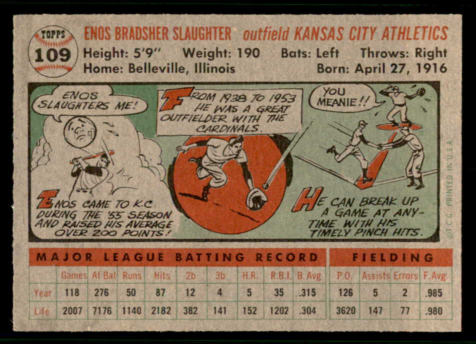 1956 Topps Baseball #109 Enos Slaughter A's EX-MT Gray 541244