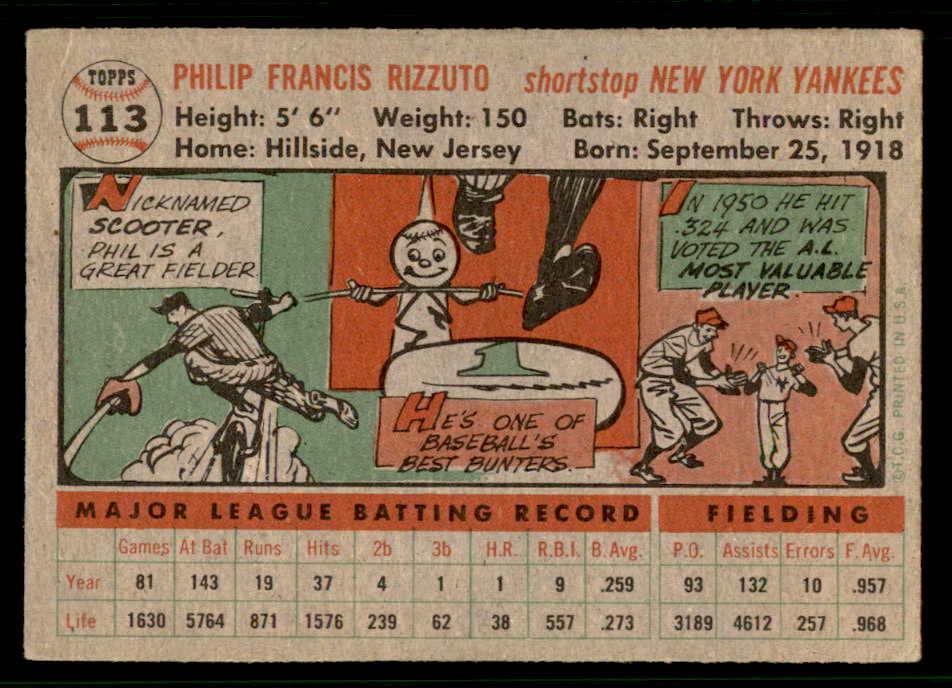 1956 Topps Baseball #113 Phil Rizzuto Yankees EX+/EX-MT Gray 541864