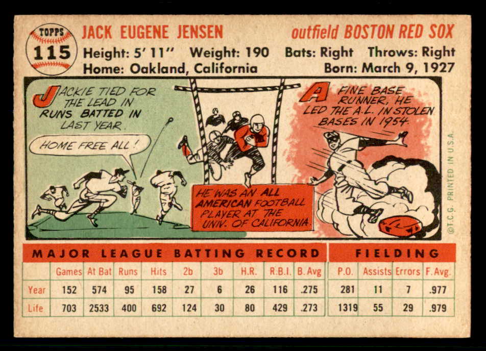 1956 Topps Baseball #115 Jackie Jensen Red Sox EX-MT White 541216