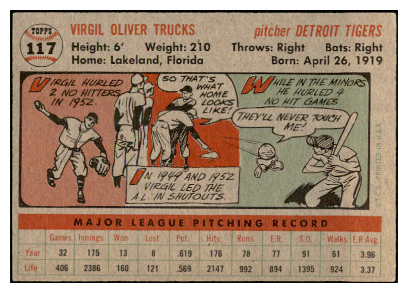 1956 Topps Baseball #117 Virgil Trucks Tigers EX-MT Gray 535142