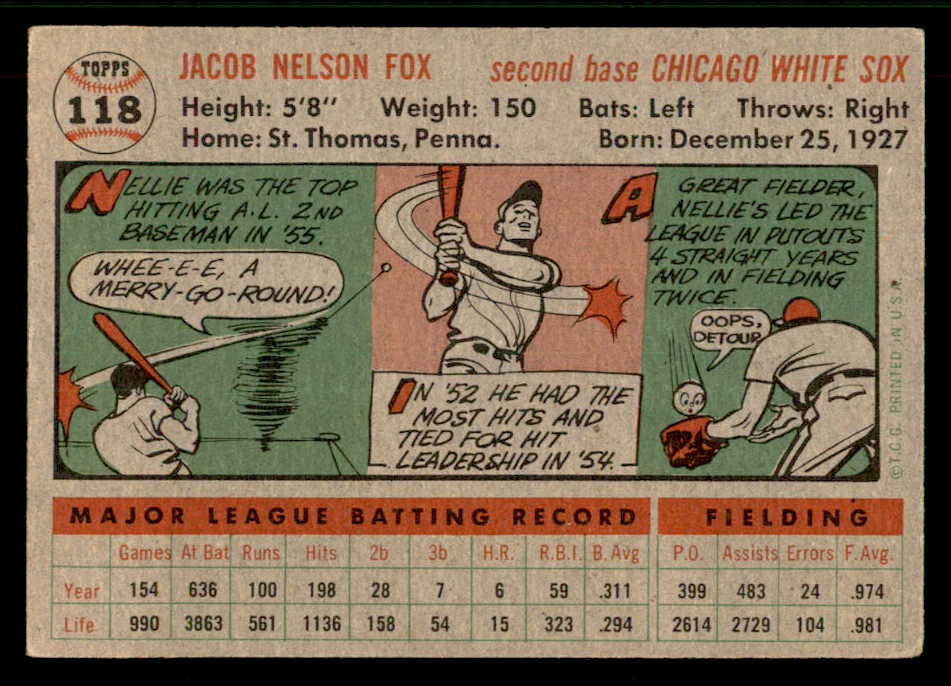 1956 Topps Baseball #118 Nellie Fox White Sox EX Gray 541647