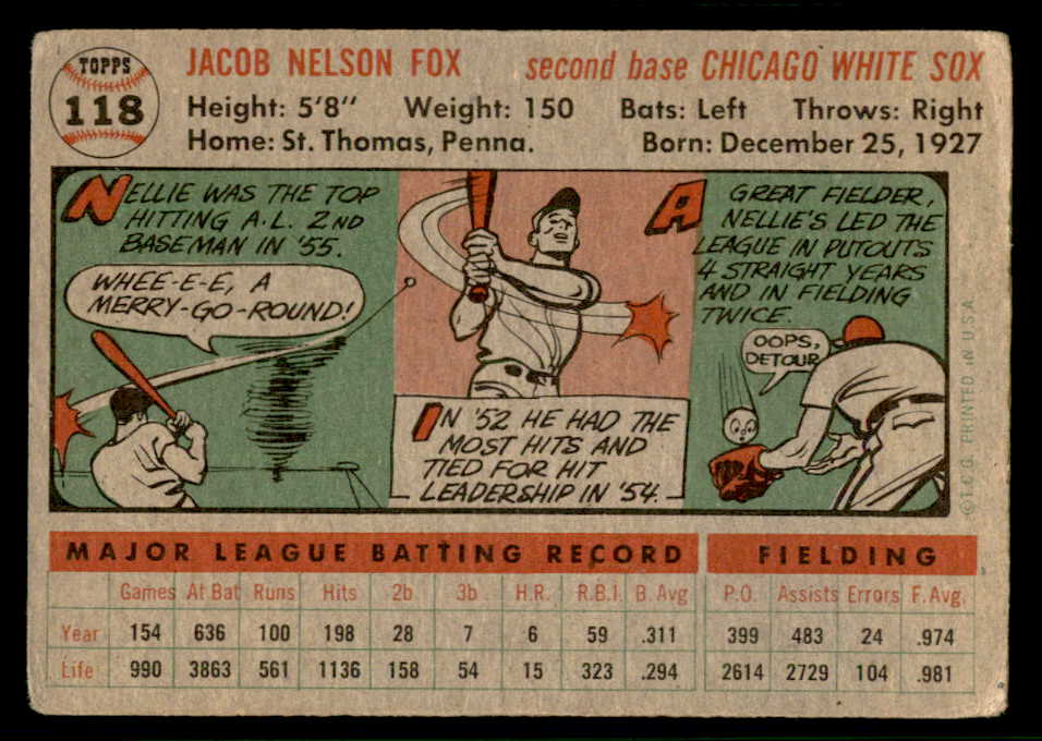 1956 Topps Baseball #118 Nellie Fox White Sox VG Gray 541193