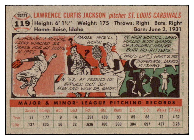 1956 Topps Baseball #119 Larry Jackson Cardinals EX-MT Gray 528400